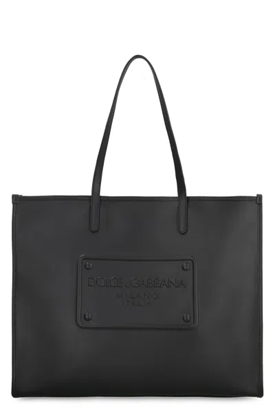 Smooth Leather Tote Bag In Black