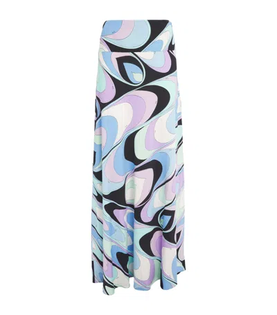 Vivara-printed Satin Jersey Maxi Skirt In Celeste Bianco