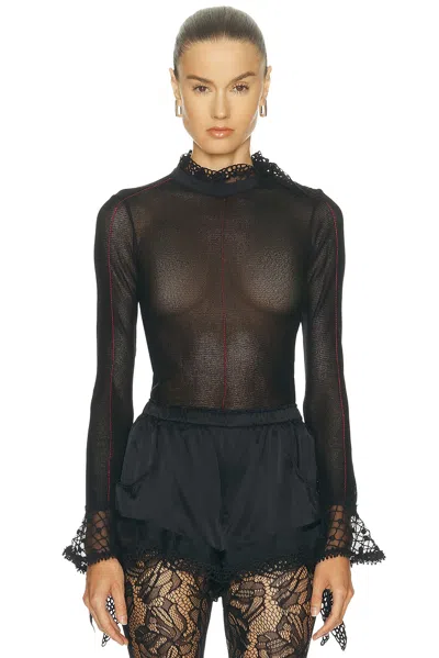 Sarah Tulle And Lace-trimmed Mesh Top In Black
