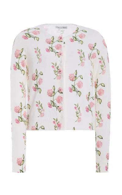 Floral Cotton-blend Cardigan Tank Twin Set In White
