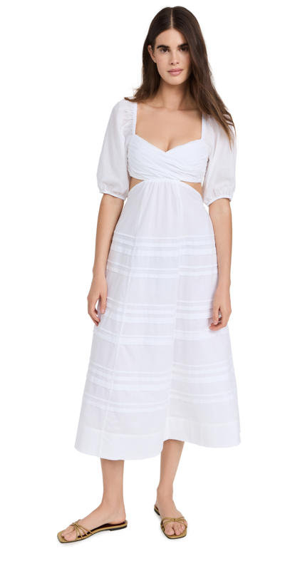 Carina Puff Sleeve Cut-out Midi Dress In White