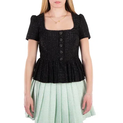 Self Portrait Black Boucle Peplum Top