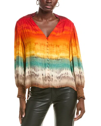 Serena Mandarin Collar Button Front Top In Crystal In Multi