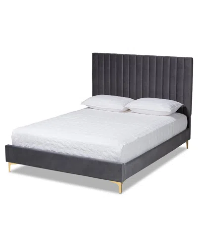 Serrano Contemporary Glam Luxe Velvet Platform Bed In Grey