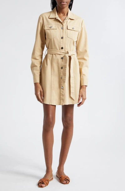 Long Sleeve Stretch Cotton Twill Shirtdress In Shiitake