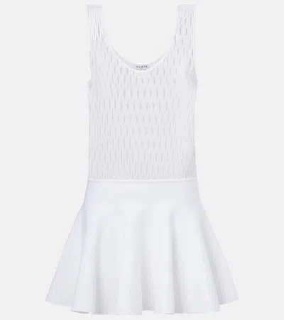 Alaia Merino Wool Knit Skater Dress With Short Sleeves And Crew Neck In Purple