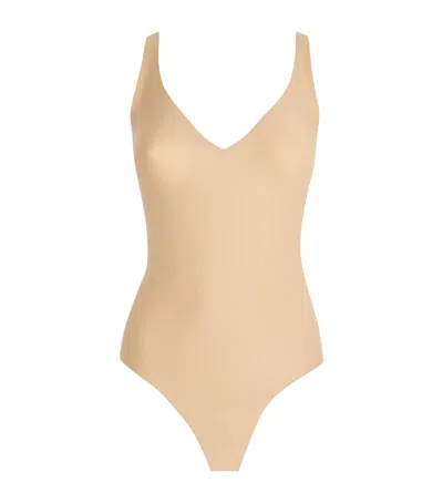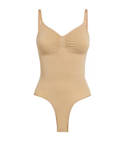 Seamless Sculpt Thong Bodysuit In Mica In Clay