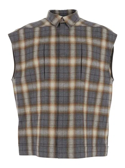 Jumbo Sleeveless Shirt Jacket In Gray