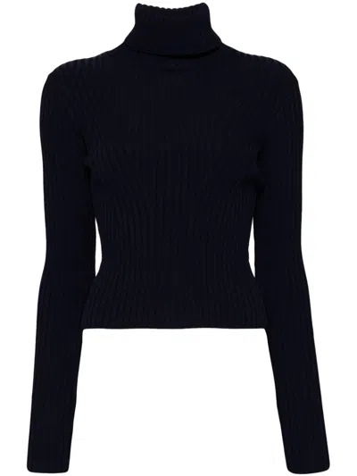 Vertical-seamed Ribbed-knit Jumper In Black