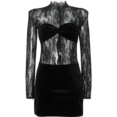 BRIGETTE 蕾丝丝绒迷你连衣裙
