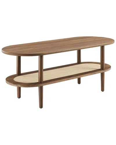 Coastal Solid Wood Oval Coffee Table With Shelf In Brown