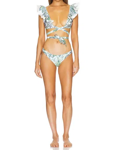 Luna Floral Ruffle Long Sleeve Playsuit In Neutral