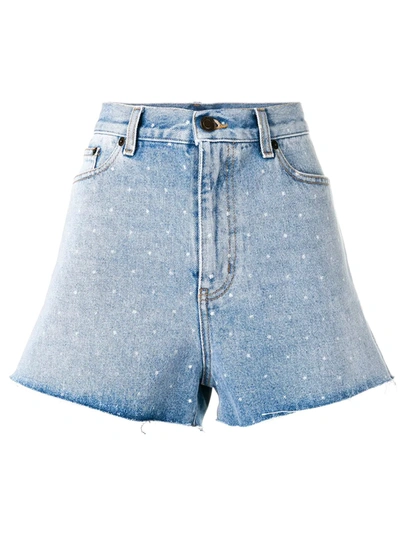 SAINT LAURENT SPOTTED BACK DENIM SHORTS - 蓝色