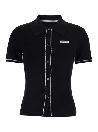 Moonogram Mesh Flock Ss Roundneck Top In Black