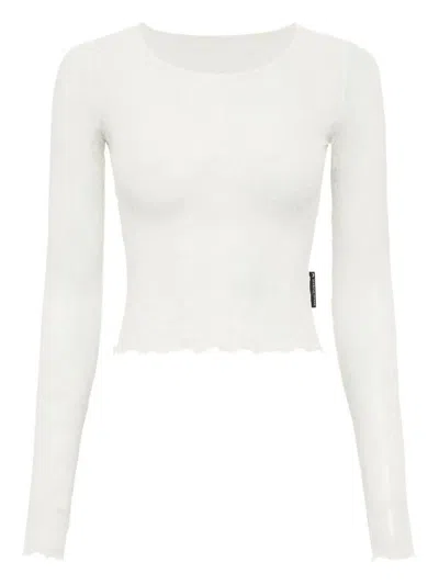 Moonogram Mesh Flock Ss Roundneck Top In Purple