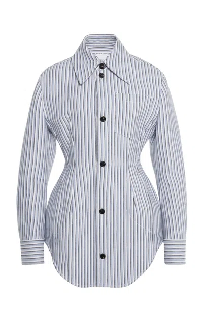 Mens Blue Stripe Striped Long-sleeved Cotton-blend Shirt