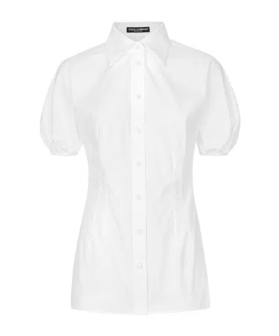 Short Puff-sleeves Shirt In White