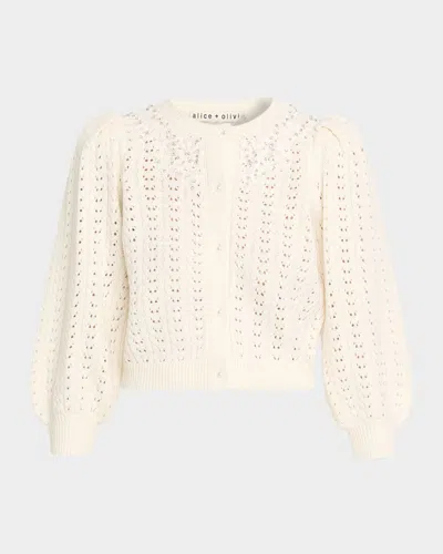 Doris Embellished Puff-sleeve Cardigan In White