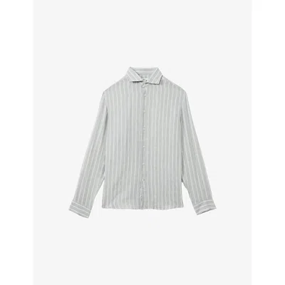 Mens Sage Stripe Ruban Striped Linen Shirt In Blue
