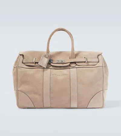 Tan Suede Duffle Bag In Brown