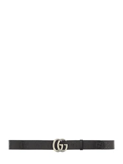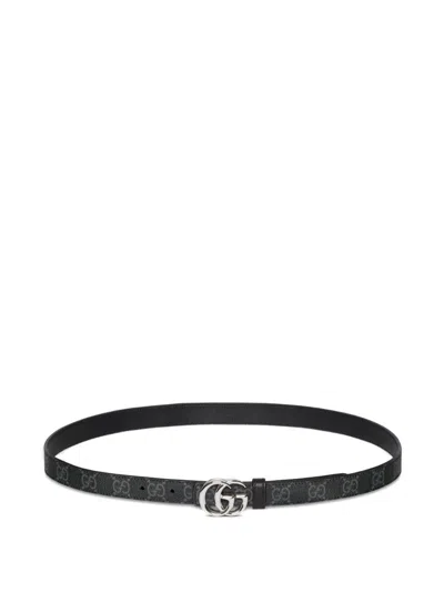Gg Fabric Reversible Gg Marmont Belt In Gray