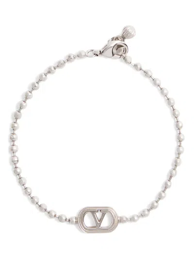 Mini Vlogo Statement Accessory With Swivel Hook Closure In Silver