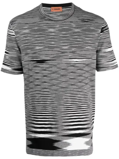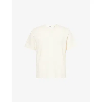 Mens Cream Jacquard Stripe Cotton T-shirt In Yellow