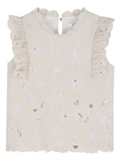 Chloe Girls Floral-embroidered Ruffled Sweatshirt In Grey