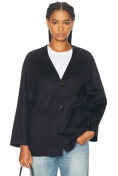 Collarless Fitted Jacket In Blue