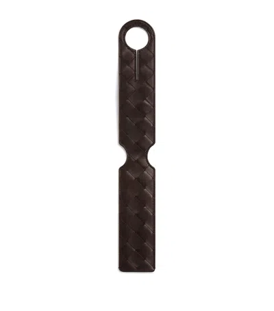 Leather Intrecciato Luggage Tag In Brown