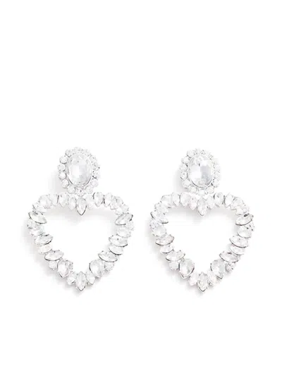 Self Portrait Crystal Pearl Heart Earrings In Metallic