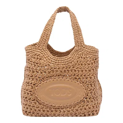 Tods Crossbody Bag Rafia Bag With Raffia Details Beige In Sand
