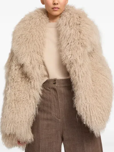 Toteme Cinched Shearling Jacket Butter In Beige