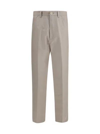 Men Trousers Tailored In Cotton With Belt Loops In Brown