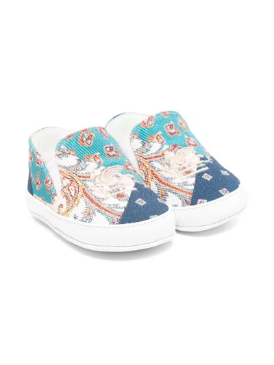 Mens Navy Brand-embossed Knitted Low-top Trainers