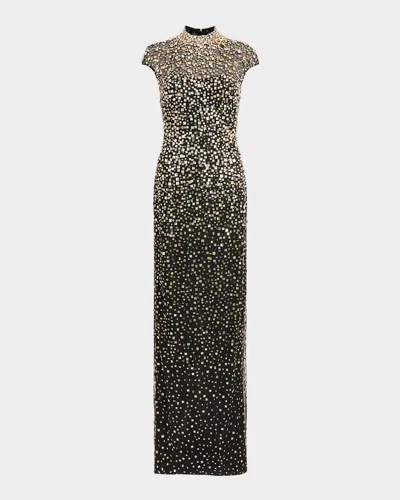Treasure Embellished Cap-sleeve Column Gown In Black