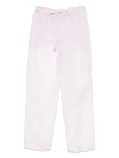 Beige Semi-transparent Silk Pants With Drawstring Waist In Multi