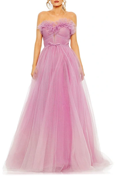 Strapless Glitter Tulle Gown In Lilac Ombre