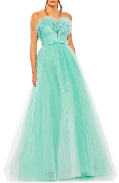 Strapless Glitter Tulle Gown In Aqua Ombre