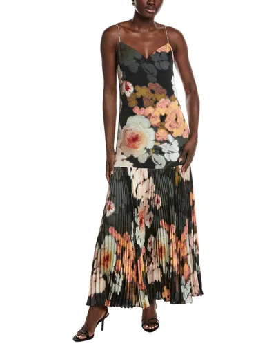 Lester Pleated Floral-print Trapeze Maxi Dress In Black