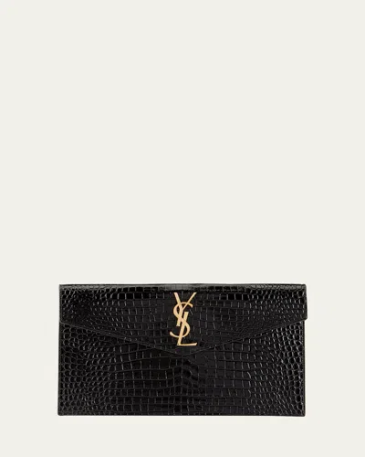 Uptown Medium Ysl Monogram Grain De Poudre Pouch Bag In Black