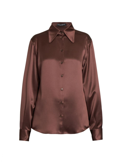 Balloon-sleeve Silk-crepe Satin Blouse In Multi