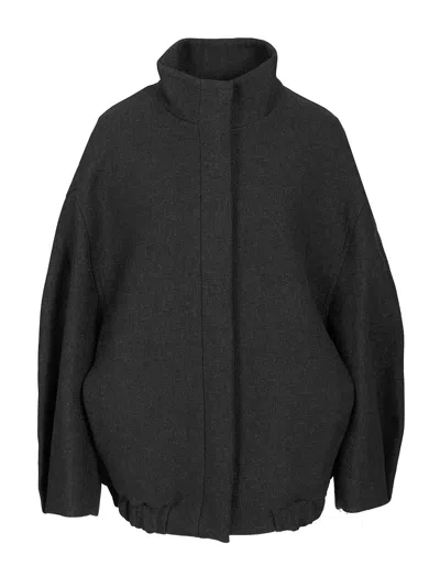 Ribbed Hem Cropped Flight Jacket In Grey