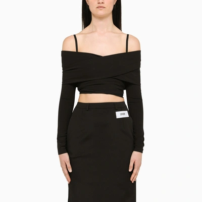 Cropped Top With Jewel Details In Nero