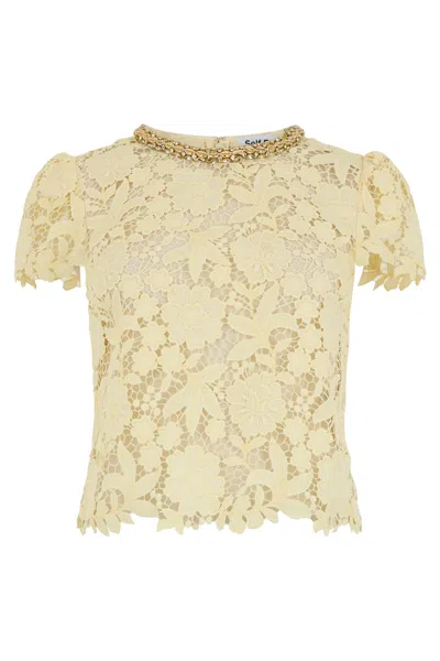 Lace Top With Jewel Collar In Nude
