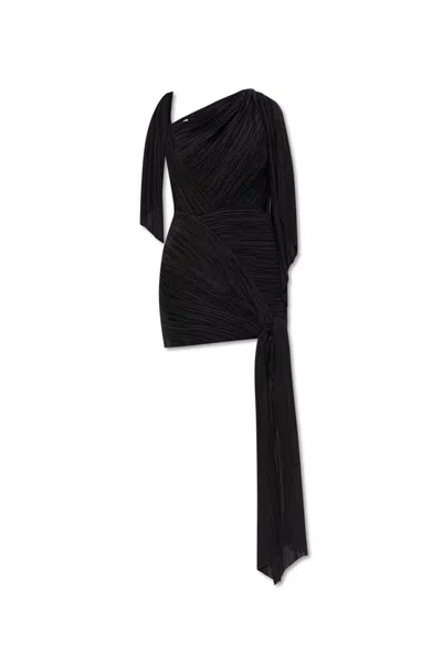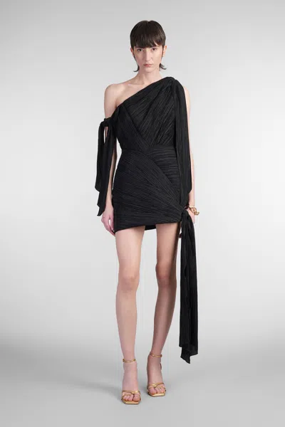 Wonder Asymmetric Draped Mini Dress In Black