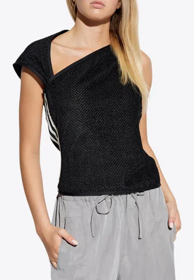 Knit Top Asymmetric Design Contrast Stripes Fringe In Black