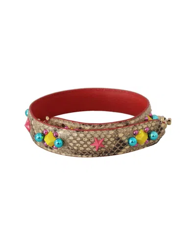 Beige Python Leather Crystals Shou In Multi