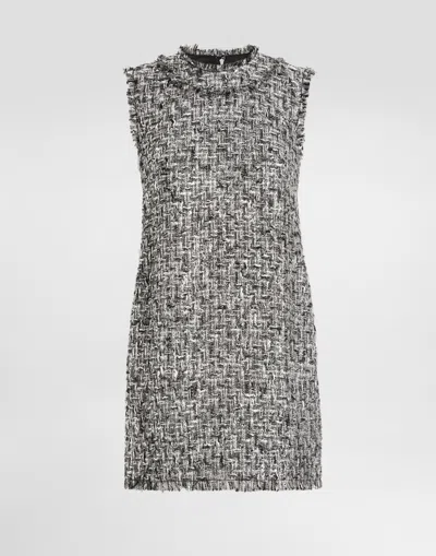 Short Lurex Tweed Dress In Brown
