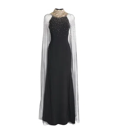 Embellished Mesh-cape Zadie Gown In Black